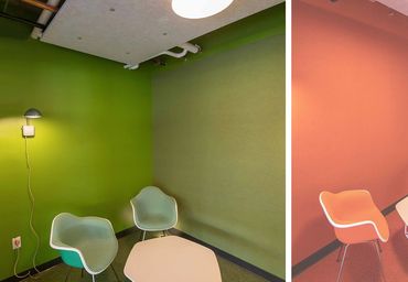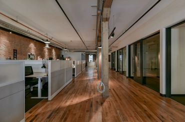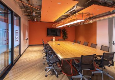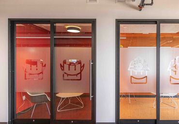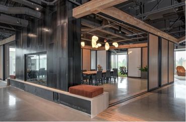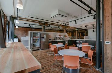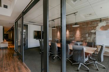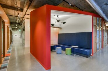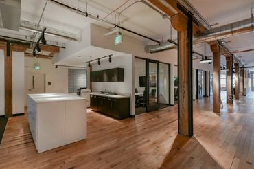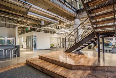 Bulletproof's space is a unique representation of the company's culture and commitment to healthy work environments and lifestyle. This space reused historic 1909 doors and salvaged and refinished the original floors while modernizing individual office spaces with custom glass sliders for sound attenuation and a mental-accent entrance wall.