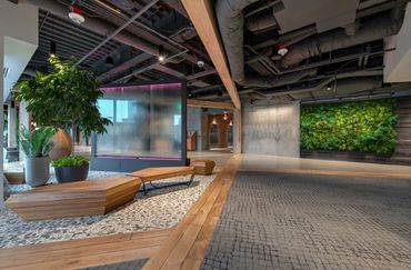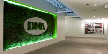 This 11,994 sq. ft. build-out for DNA, included many non-standard elements such as dramatic living green wall at the suite entry and an open ceiling concept throughout the space.