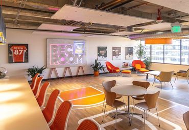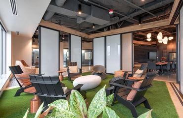 This project created a full-floor gathering hub for the growing team at this company. The space included 205,000sq. ft. open lounge space for gathering and relaxing, nooks for more private connections, small rooms for interviews or private meetings, and conference rooms to accommodate larger groups in team meetings, along with 10 floors of private offices, breakrooms, catering kitchen, soundproof media rooms, wellness rooms, and DEI/accessible spaces.